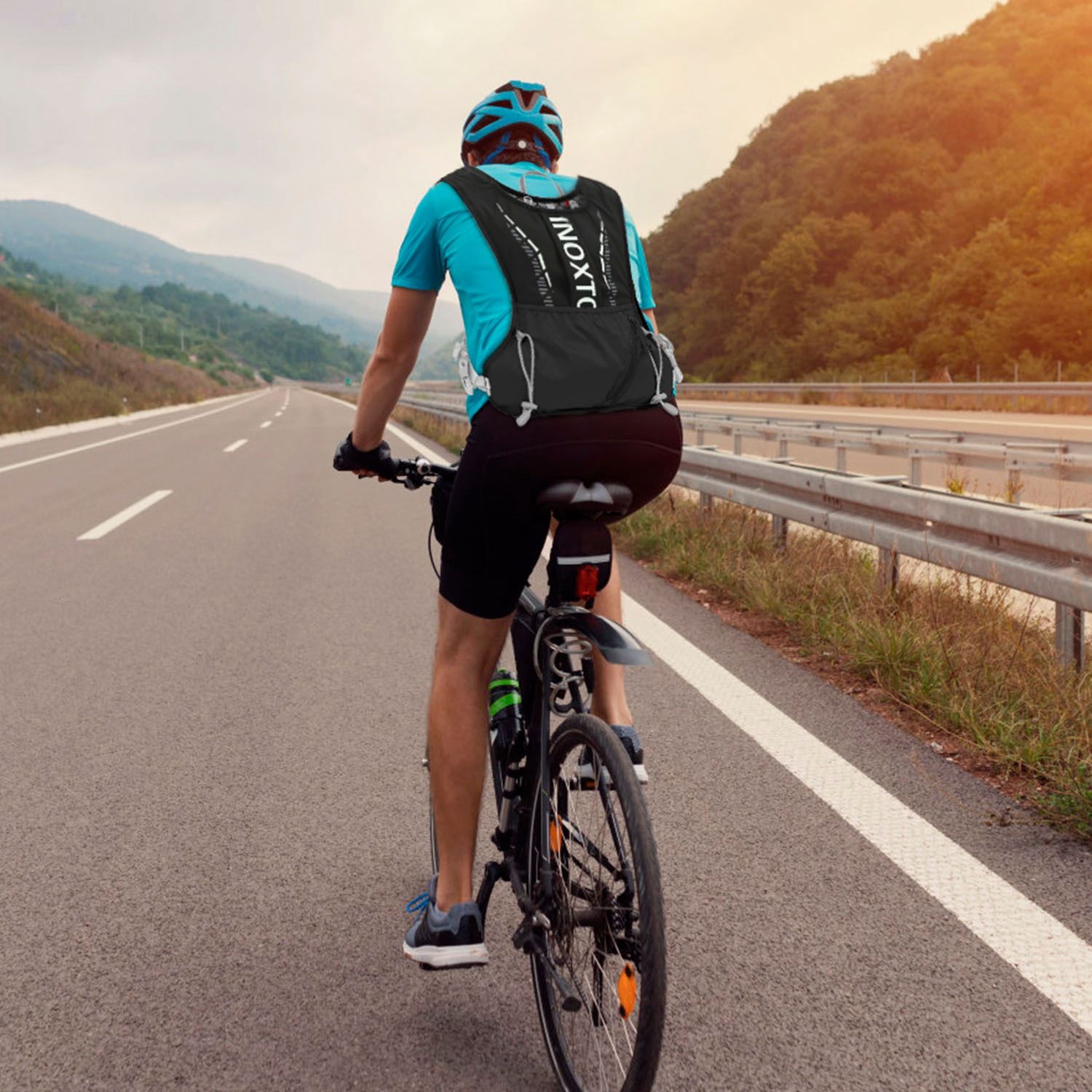 *Comfortable Wearing Hydration Vest*:Designed with polyester mesh fabric,our running backpack provides excellent air circulation and breathability to keep your back cool and comfortable. Soft shoulder straps prevent your skin from abrasion,and .38lbs lightweight effectively reduces your running burden.