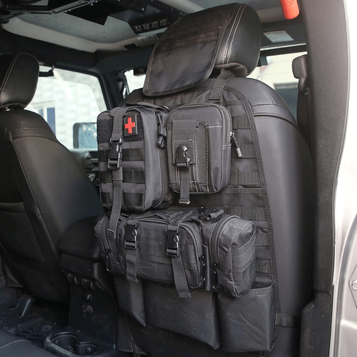 Fits All Vehicles: The universal tactical vehicle seat back organizer fits most vehicles. Such as cars, trunks, pickup trucks, jeeps, SUVs, Ford, Chevy, Toyota etc.